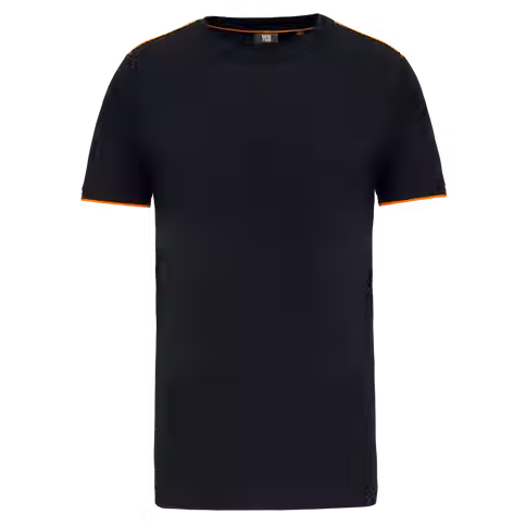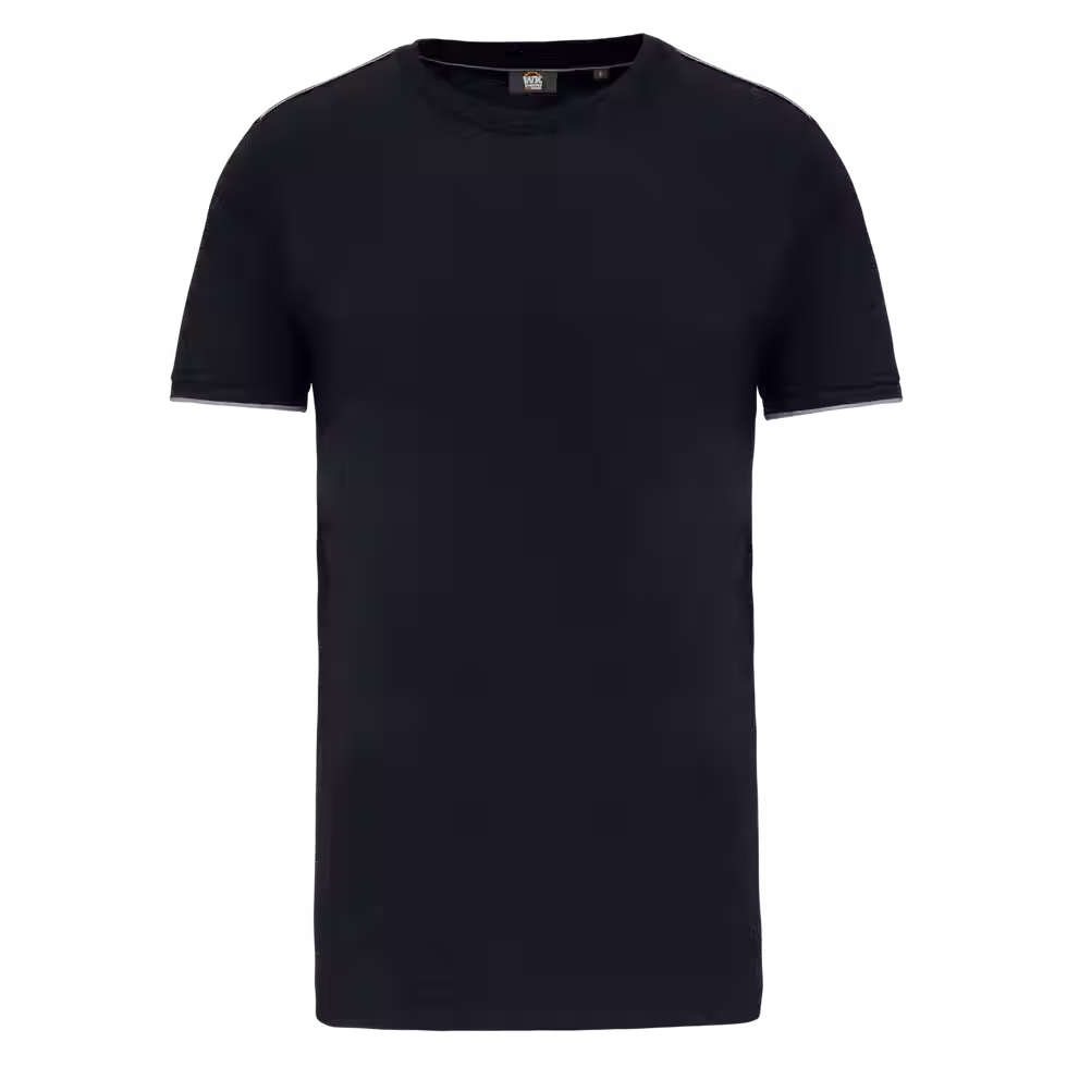 T-shirt homme résistant, lavable à 60°C, traitement antiboulochage, liserés contrastés épaules et manches.